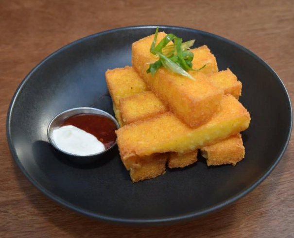 Спросите шеф-повара, раскрывающего секреты тех превосходных блюд, которые вы ели в кафе и ресторанах и хотели попробовать сами. 600 мл воды 100 г растворимой поленты 35 г сливочного масла 70 г сыра пармезан соль и белый перец Айоли сладкий соус чили Способ приготовления: Доведите воду до кипения, прежде чем посыпать полентой. Доведите до кипения, затем уменьшите огонь и варите в течение 10 минут или до готовности, периодически помешивая. Когда все будет готово, добавьте сливочное масло и сыр пармезан. Выложить в форму для запекания, выстланную бумагой для выпечки, толщиной около 15 мм и дать остыть. Как только остынет, нарежьте, размером с палец ок. 60 мм в длину и 15 мм в ширину. Поместите их во фритюрницу до золотистого цвета и хрустящей корочки. Посыпать свежей зеленью или морской солью. Подавать с айоли и / или сладким соусом чили. Приятного аппетита!