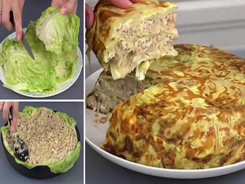 Капустная слоенка. ИНГРЕДИЕНТЫ 1 кг капусты 800 г мясного фарша 500 г картошки 3 луковицы 5 яиц 120 мл молока 200 г сметаны соль черный молотый перец ПРИГОТОВЛЕНИЕ: Первым делом займись капустой. Сними верхние листы, поставь кипятиться воду в большой кастрюле, когда вода закипит, опусти капусту целиком и подожди, пока листья начнут отделяться. Повари отделившиеся листья еще 2 минуты, после чего можешь доставать их и остужать. Далее срежь жесткие части с капустных листов. Почисти и нарежь лук, обжаривай его, пока он не станет прозрачным. Затем добавь к луку фарш и оставь жариться на медленном огне. картошка и капуста в духовке Очисти и натри на крупной терке картофель, добавь его к к фаршу, доведенному до полуготовности, посоли и добавь перец — начинка готова, осталось только всё перемешать. В отдельной миске взбей яйца и молоко. Листы капусты выложи в форму для запекания так, чтобы они полностью покрывали дно, а сверху распредели половину начинки и полей взбитыми с молоком яйцами