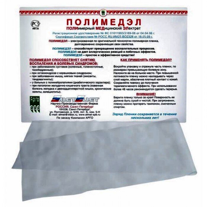 Название Полимедэл происходит от следующих слов: ПОЛИмерный МЕДицинский ЭЛектрет.