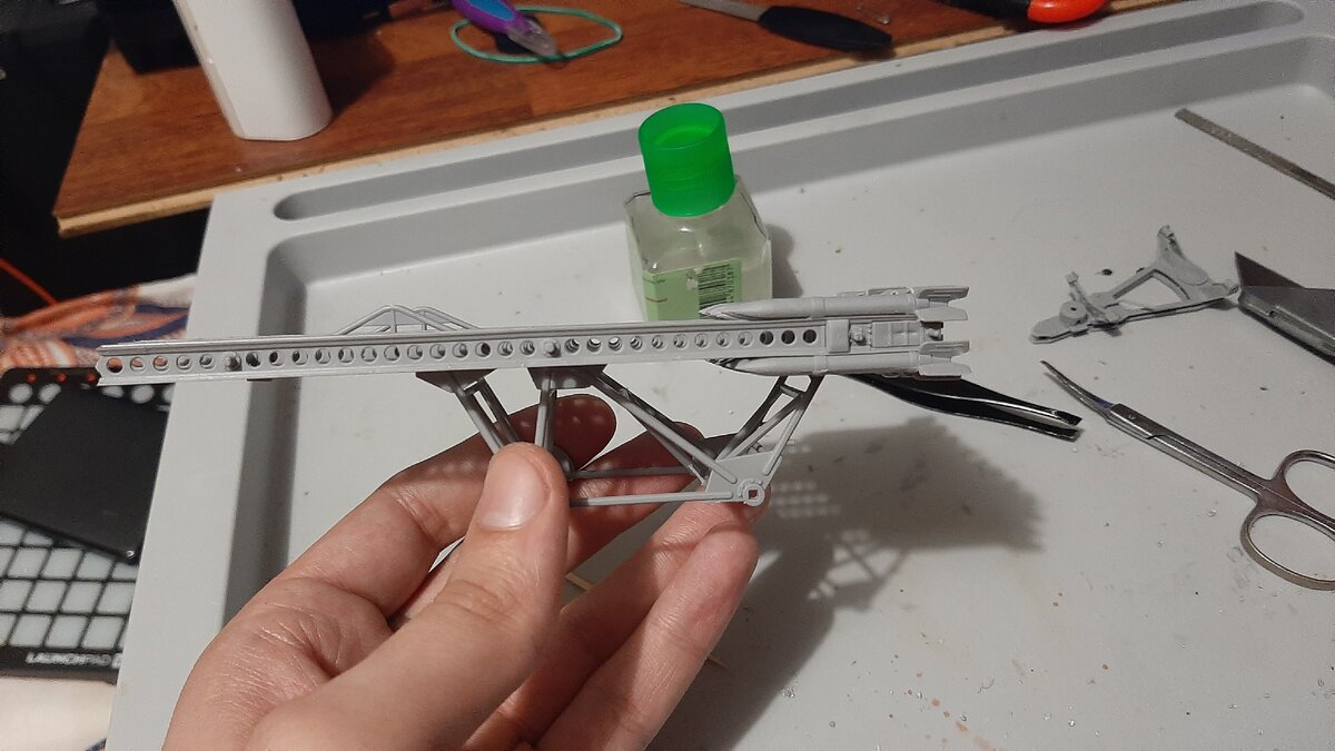 Думаю тут понятно какой вариант я выбрал. Орудие перевешивало, поэтому пока деталь клеилась пришлось держать и ждать.