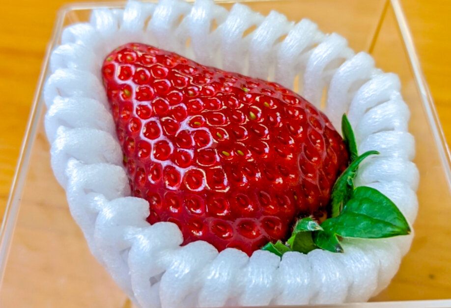Эту клубнику, выращенную в префектуре Мияги, называют Migaki Ichigo Platinum, и переводится она как «сияющая» или «отполированная клубника», где сама упаковка как бы намекает на то, что перед нами настоящий бриллиант.