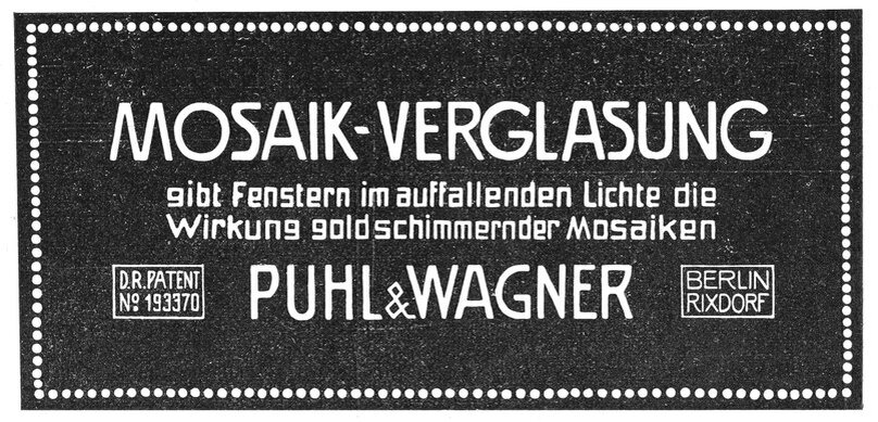 До 1890–х годов на немецком рынке художественной мозаики преобладала компания Сальвиати, однако, в 1889 году в Берлине, инженером Фридрихом Пулем и художником Августом Вагнером была основана фирма, вскоре сама ставшая монополистом немецкого рынка художественной мозаики и витража. После многочисленных опытов в стеклоделании Фридрихом Пулем и художником Августом Вагнером было организовано собственное производство стекла. Август Вагнер взял на себя коммерческое управление и приобретение новых заказов, в то время как Фридрих Пуль стал техническим директором производства стекла и мозаики. Его обязанности также включали исследования и разработку новых продуктов. С самого начала своего существования компания получила поддержку имперской администрации, получая от нее большинство заказов. Уже к 1896 г. число работников компании достигало 30–40 человек; для подготовки кадров компания привлекает специалистов-итальянцев.