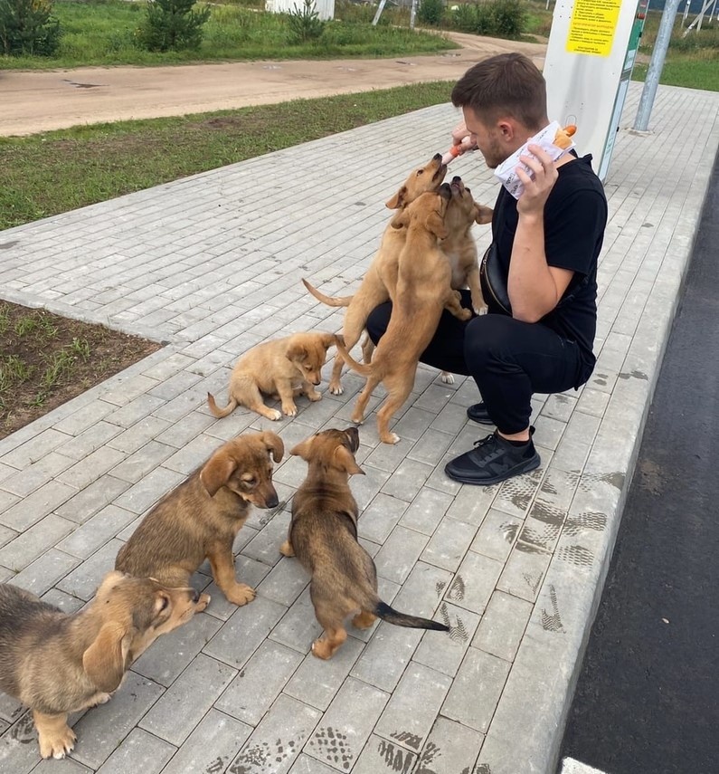 Как можно было так удивить. Эта собака просто невероятная. Самая приятная находка на сегодняшний день пожалуй. Мы отдыхали с друзьями недалеко берега водохранилища. И вдруг нам захотелось прогуляться на заправку за чем-нибудь вкусненьким. По дороге мы встретили собаку. Сучка оказалась недавно щенившаяся. Мы конечно же захотели ее накормить и позвали ее с собой. Решили, что пойдем вместе с ней и купим ей хотя бы сосисок. Зашли на заправку, заказали себе хот-доги. Пока еда готовилась, решили выйти покормить новую подругу. И знаете что. Оказалось, что это не она с нами шла, а мы с ней. Прямо со двора недостроенного коттеджа один за другим начали выбегать щенята, бежали прямо за мамой лапка в лапку. Это была самая приятная находка за этот день. Это невероятные эмоции, в которые мы окунулись. Десять маленьких щенят облизали нас с ног до головы. Самое забавное и непонятное было то, что они разные по телосложению. Одни похожи на таксу с коротенькими но толстенькими лапками. Вторые похожи н