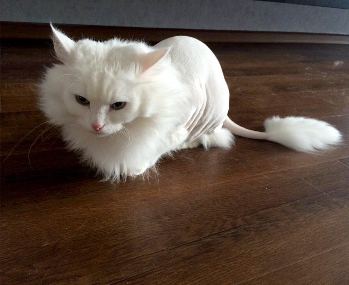 Женщины охали и ахали, рассматривая наголо побритого кота через решетку переноски, после чего одна из них спросила: