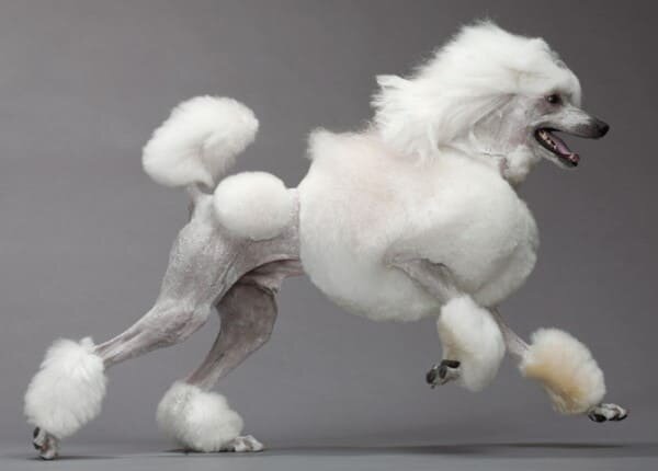 Появились специальные парикмахеры для «придворных» пуделей. Прежняя охотничья практичная стрижка развилась в несколько декоративных вариантов, собакам начали выстригать красивые кисточки, помпоны и манжеты.