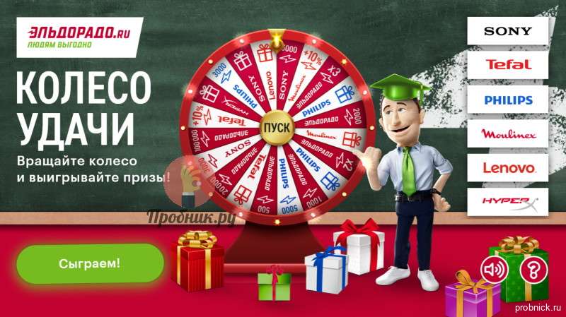 С 20 по 31 декабря 2020 года магазин “Эльдорадо” проводит акцию “Колесо удачи”. Суть ее проста, для участия нужно всего: За регистрацию дает одно вращение, но также можно получить еще два дополнительных: На самом дели можно этого ничего не делать, сайт отслеживает только нажатие на кнопку а не сами подписки. Можно выиграть следующие призы: В течении часа вам придут смс с промо кодами на указанный телефон. Всем удачи, судя по отзывам некоторым действительно выпали пылесосы и смартфоны за 1 рубль. Спасибо за внимание и подписывайся на канал)