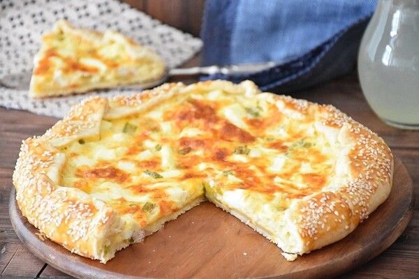 Простой открытый пирог с сыром, яйцом и зеленым луком похожий на пиццу. Отлично подходит в качестве ужина, к вечернему чаепитию. Неудивительно, что открытые пироги (так называемые галеты) очень популярны в последнее время. Приготовить такую выпечку сможет и начинающий, а на вкус она не уступит любому сложному в приготовлении пирогу. К тому же они очень универсальны - одинаково хороши как на завтрак, так и на ужин. Сегодня готовим открытый пирог с сыром и яйцом... Ингредиенты Мука пшеничная – 200 гр Масло сливочное – 100 гр Вода – 4 ст.л. Соль – щепотка Сыр твердый – 100 гр Яйца куриные – 4 шт. Йогурт греческий – 2 ст.л. Лук зеленый – пучок Соль – по вкусу Дополнительно: Желток – 1 шт. Кунжут – по вкусу Как приготовить"Открытый пирог с сыром и яйцом" Для приготовления теста необходимо сразу подготовить ингредиенты по списку. Муку, сливочное масло и соль перетереть в крошку. Влить холодную воду и быстро замесить однородное тесто. Сформировать шар, завернуть в пищевую пленку