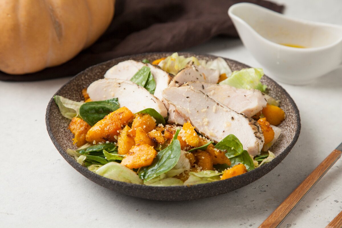 Сладость тыквы отлично гармонирует с нежной куриной грудкой и хрустящими свежими листьями, попробуйте!
