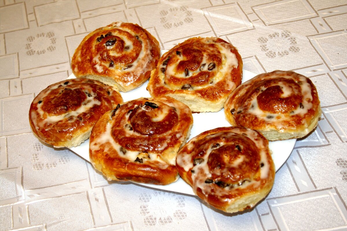Румяная, с легким хрустом корочка и сладкая глазурь, под которой скрывается сдобный ноздреватый мякиш, а уж аромат – и вовсе не описать! Подайте их с молоком или чаем.