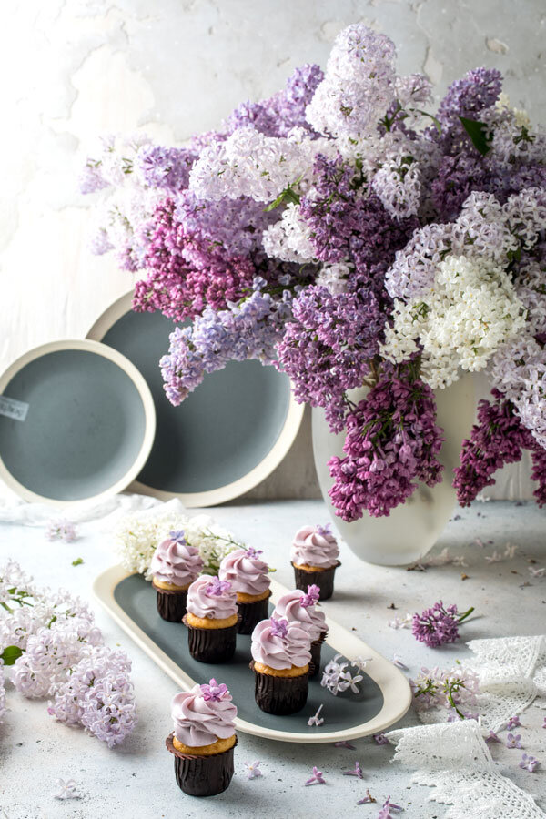 В нашем архиве этого лета залежалось еще одно "сиреневое лакомство" :) Сирень уже отцвела, но для придания этим капкейкам нужного цвета как раз достаточно ягод.