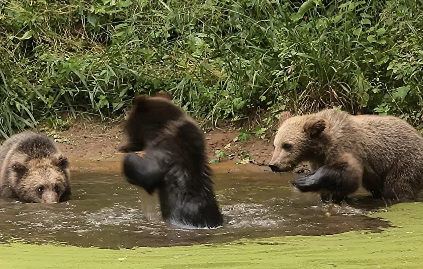 Кроме того, медвежата регулярно посещают лесное озеро, расположенное неподалеку от вольера, где они купаются и играют. В Центре спасения медвежат-сирот сейчас находятся 18 малышей. Центр спасения медвежат-сирот находится в деревне Бубоницы Торопецкого района Тверской области. Это единственное место в России, где специалисты спасают, выхаживают, выращивают, готовят к самостоятельной жизни бурых медвежат-сирот, выпускают их в естественную среду обитания и следят за адаптацией в природе.