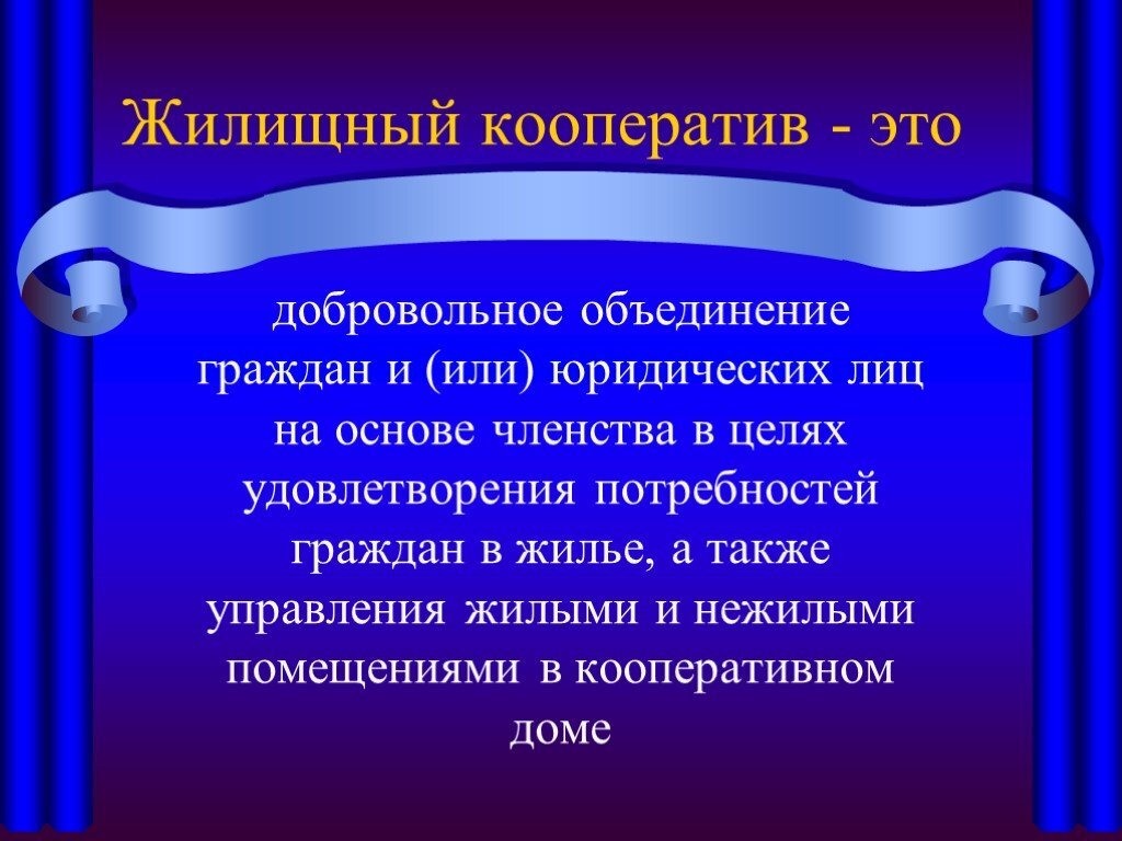 Жилищный кооператив — некоммерческая добровольная организация, которая помогает своим членам приобрести недвижимость за счет их собственных средств. Люди по своей воле объединяются, чтобы достичь одной цели — накопить средства и купить или построить жилье.
