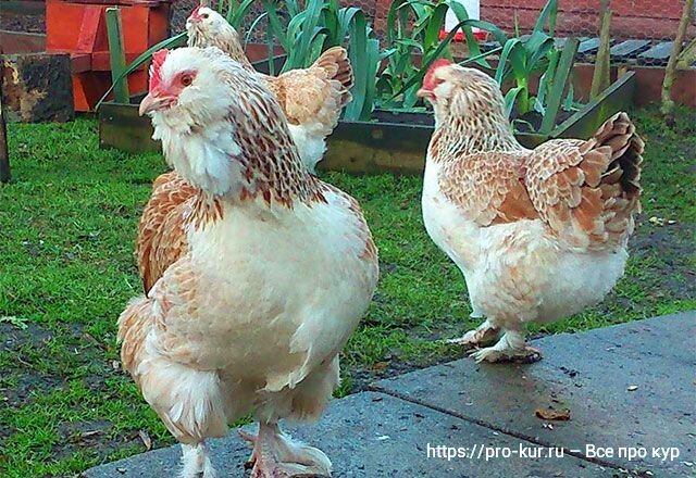 Самки должны быть с оперением чисто лососевого окраса и без черных вкраплений. Проще говоря, отбирается птица лососевого или серебристо-белого цвета. Когда нужны куры с более интенсивным развитием, ставка делается на второй цвет.