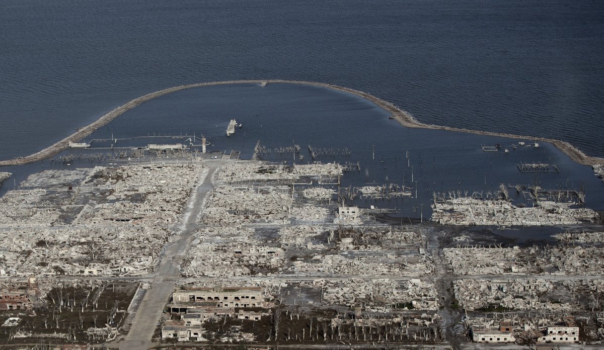 1) 1.Вилья-Эпекуэн. Аргентина Этот туристический городок стал ещё одним трагическим примером непродуманного воздействия человека на природу. Построенный на берегу озера курорт был популярнейшим местом отдыха, пока человек не решил вмешаться в природные процессы. Местные власти решили расширить территорию озера, но по истечении 10 лет вода стала постепенно заливать пляжи и здания. С целью сдерживания воды было решено построить дамбу, но однажды она не выдержала и затопила Вилья-Эпекуэн. Люди, спасая жизни, покинули городок. Соль и солнце после спада воды завершили разрушение некогда прекрасного места. В 2009 году в своём полуразрушенном доме поселился Пабло Новак, живший здесь до наводнения 2) Сан Жи. Тайвань. В конце 70-х годов ХХ столетия на северном побережье острова Тайвань задумали реализовать грандиозный проект по строительству роскошного курортного городка. Необычные и стильные дома предназначались для богатых клиентов. Но ещё в процессе строительства стали распространяться слухи