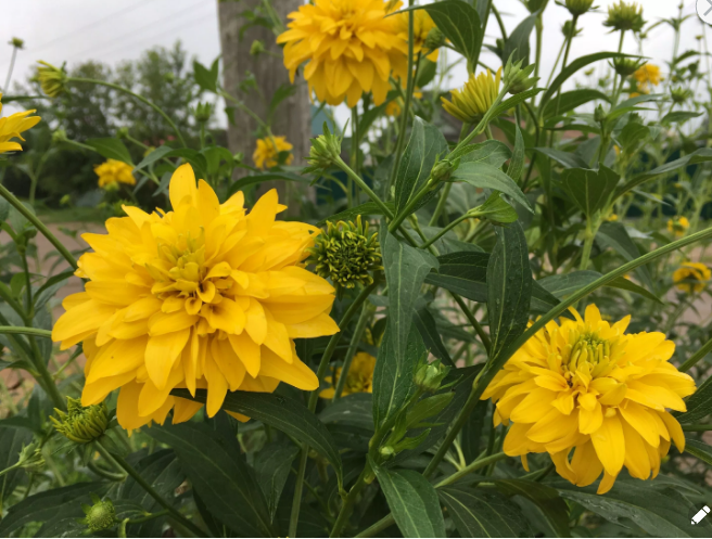 Захотелось мне немного пошутить и показать, что даже самый растрепанный и некрасивый цветок можно подвязать красиво. И даже при помощи совершенно кривого и неподходящего толстого столба. Прошу всех включить воображение и на месте этого большого куста рудбекии, которая называется "Золотой шар", представить любой переросший, поваленный ветром и дождем цветок. Причем, уже в конце своего сезона, когда и часть цветов уже отцвела и листья стали бурые, пыльные... Обычно такие цветы хочется попросту убрать, срезать чтобы не портил картину. Но... Но в данном случае, картина уже такая, что ее трудно чем-нибудь испортить. Всему виной несколько переросшая из-за дождей трава. Вообще-то, эта статья - мой ответ всем глянцевым журналам, в которых показывают невероятные по красоте ухоженные сады и цветники. Смотришь на какие-то садовые изыски, потом в окно... И понимаешь, что рад бы в рай, но... что-то не пускает. Согласитесь, что наша действительность не располагает к повторению слишком дорогих вари