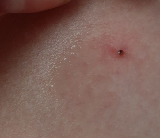 Хочу поделится очень интересной историей, которая случилась со мной не так давно. Пошла я значит за грибами. Грибы это конечно хорошо, но самое интересное произошло со мной потом. Через 2 дня чувствую что-то не то. На ноге какая-то припухлость такая непонятная, немного и больно и чешется, сначала подумала комар что ли укусил. Но потом внимательно присмотрелась. Как вы думаете, что это??? Долго не могла понять, что же это. Ну я решила не ковырять себя и не травмировать свою кожу, так как чтобы там ни было, оно было полностью погружено в меня. Я просто обильно смазала это место антибактериальным средством с органическим чайным деревом "Love Nature" от Oriflame и просто стала ждать и наблюдать. Результат не заставил себя долго ждать. Через некоторое время, это вылезло наружу. Ну и что это по вашему оказалось. Вот посмотрите, та часть опухшего места и пятнышко, убегающее от него. Это был очень маленький клещ, он такой маленький просто жуть, как я его вообще обнаружила это чудо. Я вык