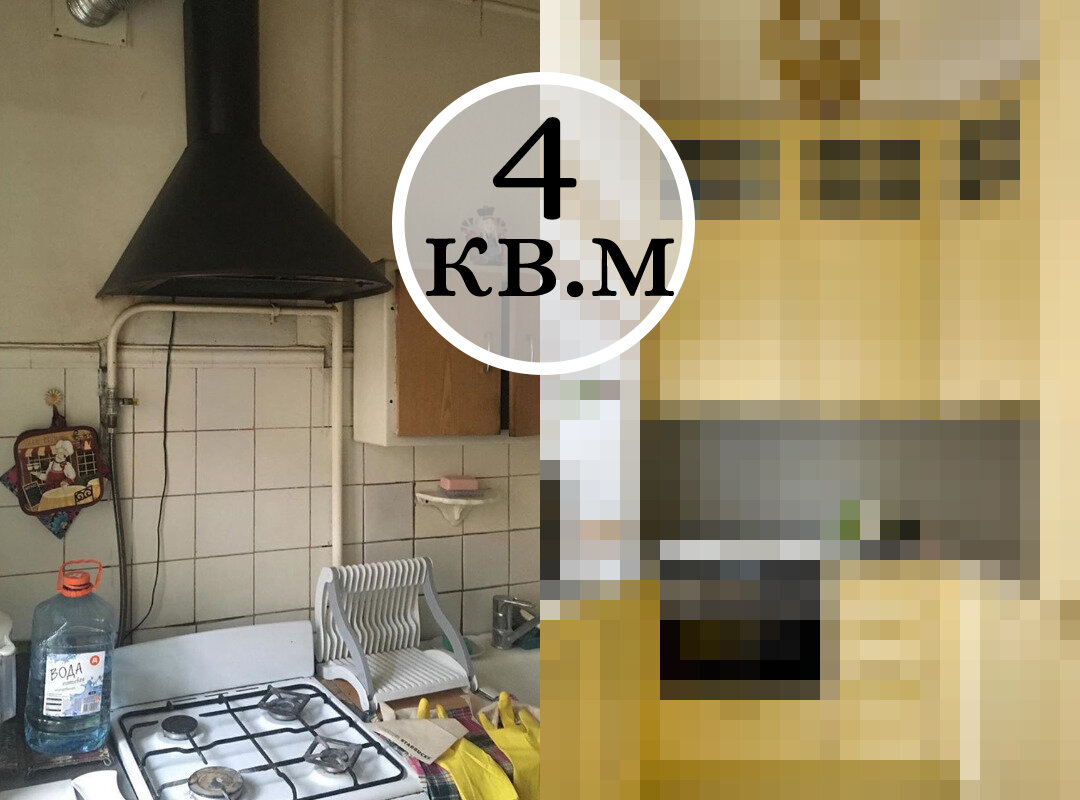 На рабочей поверхности можно увидеть типичную для «того» времени плитку, которая плавно переходит в побелку. Из техники можно увидеть бюджетный холодильник, изрядно уставшую газовую печку и вытяжку.