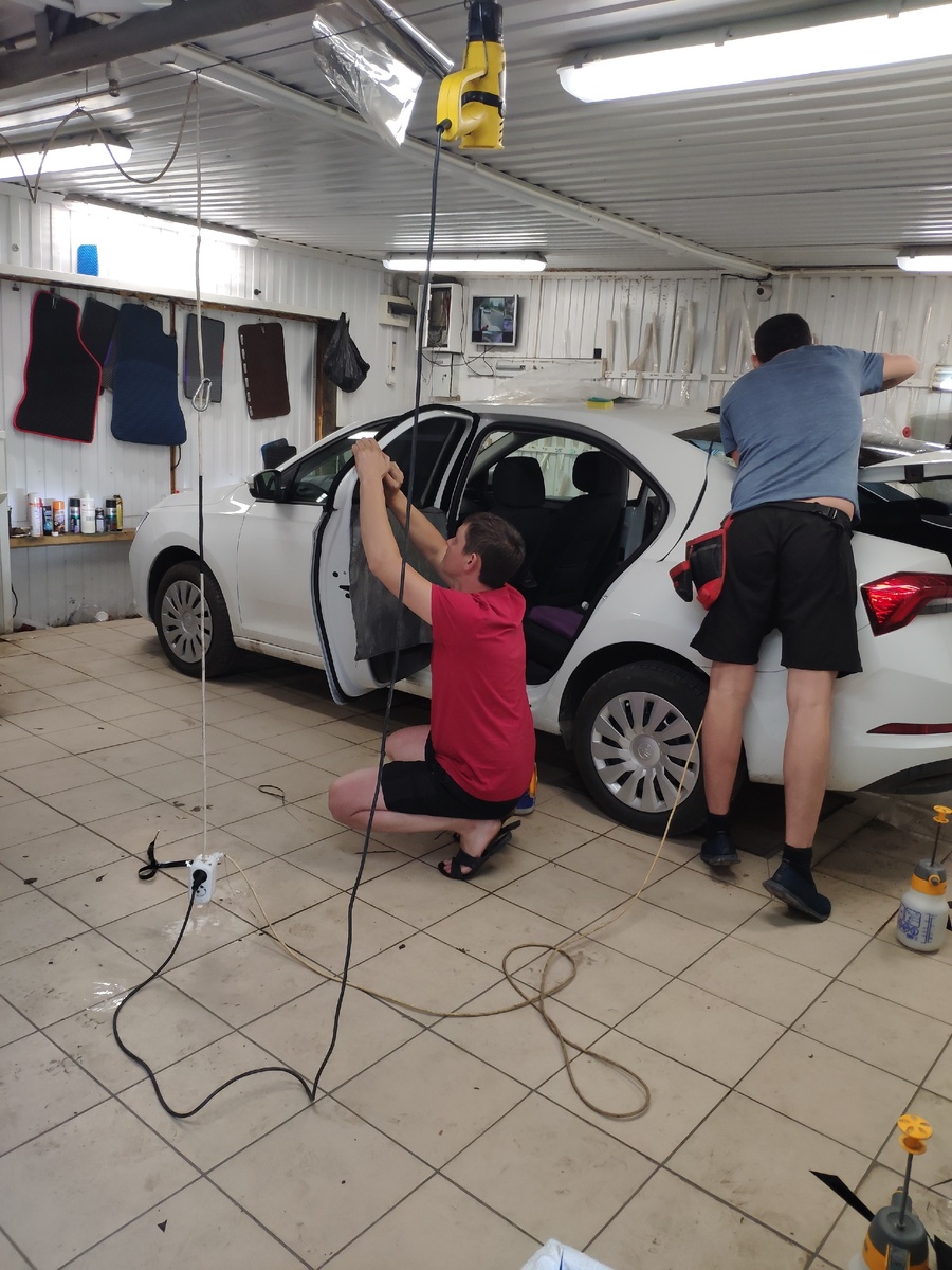 Всем привет мои читатели) Решил сделать небольшие приображения своему рапиду, а именно поклейка Тонировки и покупка литых дисков с новой резино. Решил начать с простого отвезти машину к тонировщику, но и тут стоял выбор чтобы мастер был так сказать с руками. По спрашивал своих друзей и коллег на работе и выбор пал на одно из лучших станций моего города. В итоге как загнал машину, её делали сразу 2 тонировщика, ну я подумал хорошо быстрее будет по времени. Поклеили заднюю полусферу немало известной плёнкой Lumar 5%, да пусть она немного дороже, но видимость лучше чем у тех же американских конкурентов. После того как работы были проведены стал выбор затонировать переднии стекла съёмной тонировкой или же сделать той же пленкой Lumar, но уже не 5% а 35% свето пропускаемости. Выбор пал на Lumar 35%, для меня через сьемную тонировку с теми же 35% свето пропускаемости, все видно очень мутно и не чётко + у меня у самого зрение не идеально но хожу в линзах. После выезда из станции, сразу