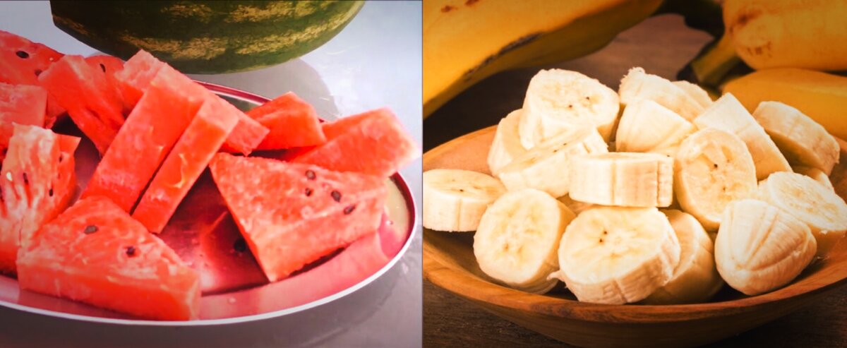 Я очень переживала , ведь арбуз -водянистый невероятно, а бананы быстро портятся , но очень уж хотелось попробовать, а вдруг все получится ?