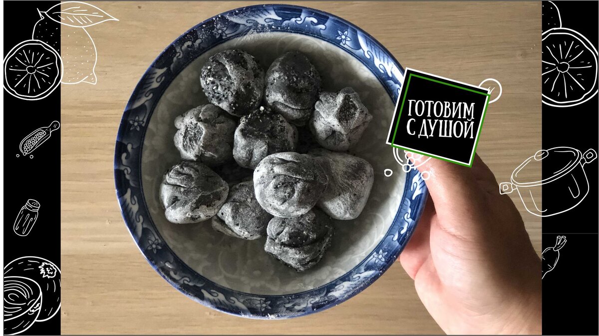У меня вышло интересно: пару дней назад я заготовил фрикадельки для какого-нибудь азиатского супа, но с утра пришла идея приготовить чёрные хинкали.