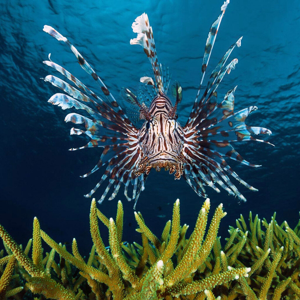 Рыба-зебра, красная крылатка, она же крылатка-зебра, а еще морской дьявол и это все один вид рыб, который относится к семейству Скорпеновых, включающий 23 рода. Видов насчитывают более 170.