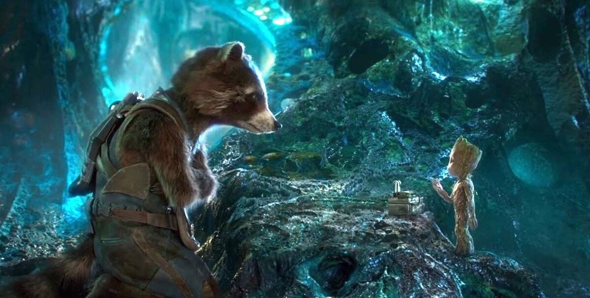 Во второй части "Стражей Галактики" Ракета Енот несколько месяцев путешествует со Стражами, в том числе с недавно выросшим малышом Грутом.