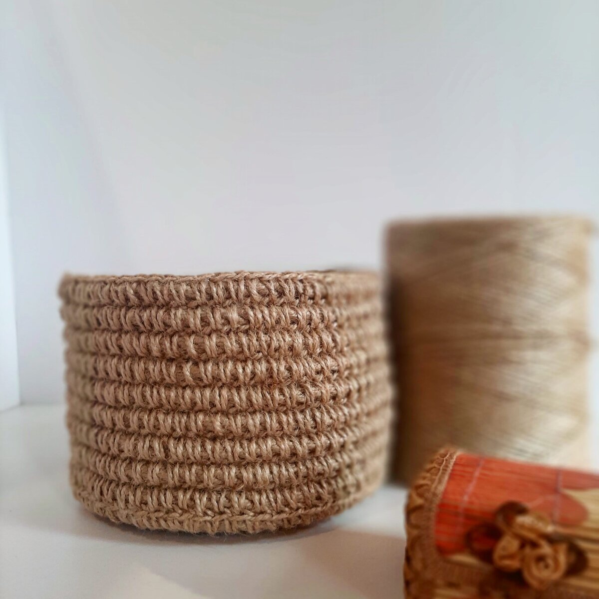 Для работы нам понадобится: 1.джут 2х ниточный 100м 2. Канат джутовый 8мм - 5м 3. Крючок 3,5 4. Ножницы 5. Сантиметр Для начала нам нужно связать дно диаметром 18 см. Затем переходим ко второй части и вяжем стенки корзинки