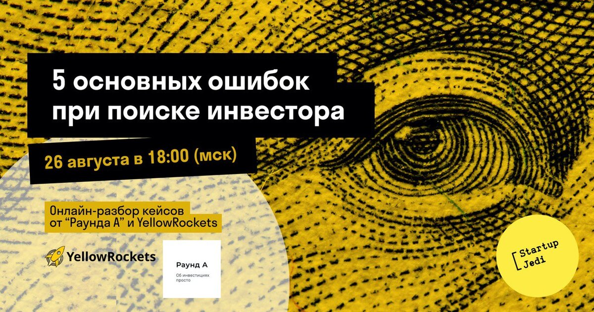 Онлайн-разбор кейсов от YellowRockets и «Раунд А» «5 основных ошибок при поиске инвестора»