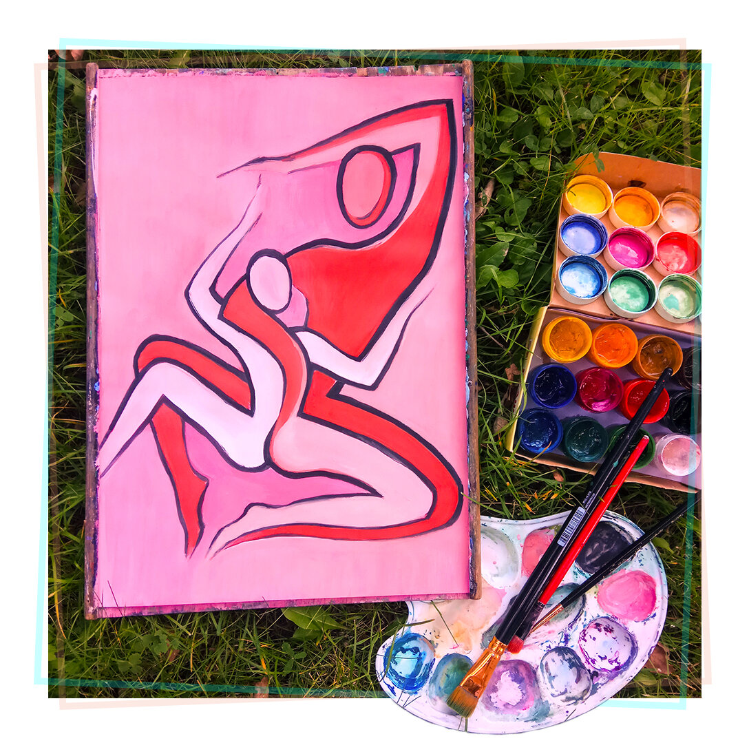 Хотя я чаще пишу маслом, гуашь — моя особенная любовь. Она проводник моих мыслей и фантазий, материал, помогающий выразить то, что волнует в данный момент. На днях набросала триптих, посвященный биполярному расстройству. Самая яркая часть биполярочки — это веселое время под названием "Гипомания". Время, когда все краски становятся ярче, а жизнь больше не кажется адским трындецом. Ведь для окружающих трындец — это ты — болтающий без умолку, не способный концетрироваться на чем-то важном, плывущий по волнам отшибленной сиюминутности... Тебе кажется, что ты воплощение остроумия и сексуальности, кажется, что ты имеешь этот мир (а не он тебя). Конечно, потом приходит депрессия и ты понимаешь, что снова показалось. Но все это потом. Сейчас ты веришь, что "потом" никогда не наступит. Сейчас ты просто счастлив. Счастлив, как никогда. Смеешься, рассказываешь трешовые истории, удивляешься и влюбляешься, как в первый раз. Я передала состояние гипомании через упрощенные формы и лаконичные