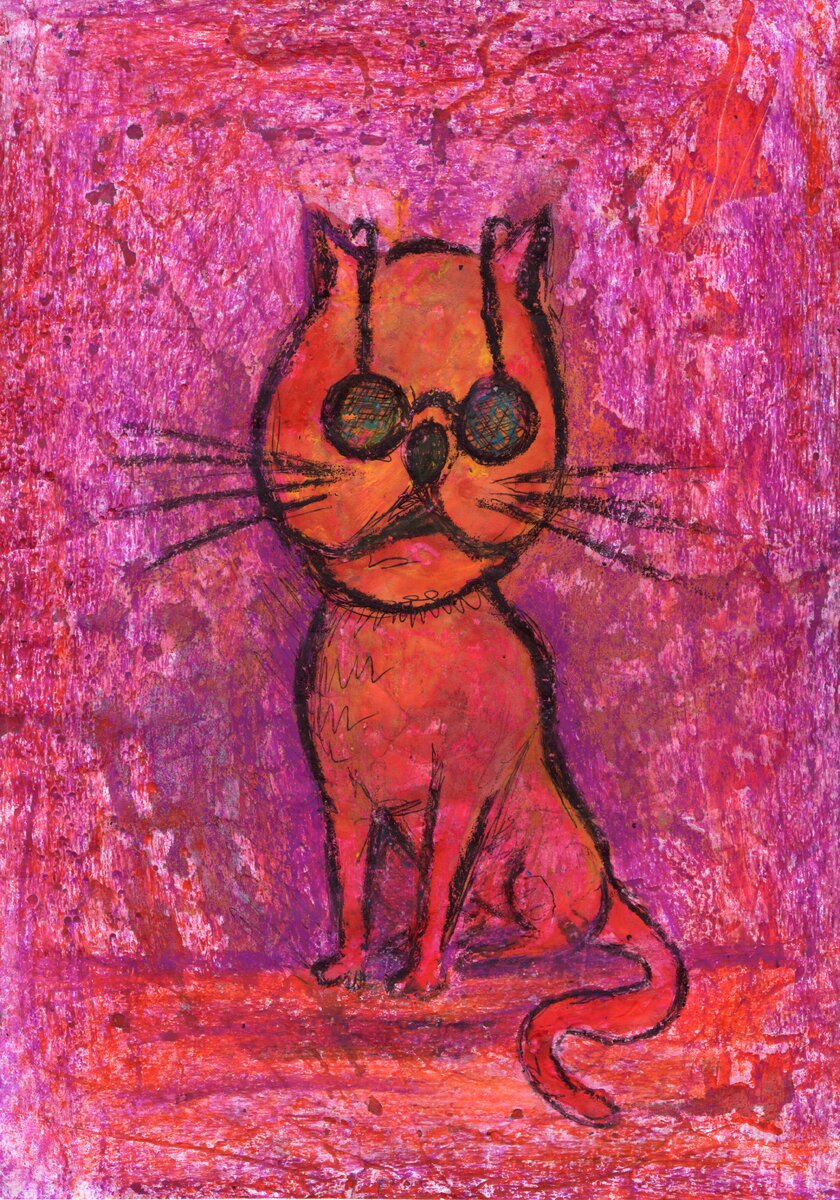 Red cat with black glasses.