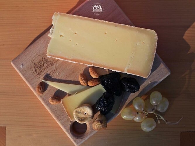 Молоко подогревают в медном казане на огне, пока оно не начинает превращаться в простоквашу, которая затем преобразуется в твердый сгусток — его разрезают, перемешивают и продолжают варить, чтобы окончательно пастеризовать и подчеркнуть вкус. Далее сыр отправляется в специальные емкости, где каждый круг обозначают датой производства и переносят в специальное помещение на деревянные полки для созревания — раз в неделю сыр переворачивают и обмывают.