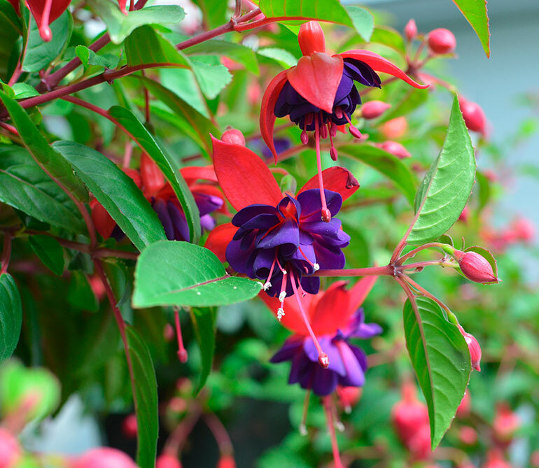 Растение фуксия (Fuchsia) является представителем семейства Кипрейные. Данный род объединяет около 100 видов. Такое растение получило название в честь Фукса, который был немецким ботаником. В природе фуксию можно повстречать на территории Центральной и Южной Америки. Такое растение представлено маленькими кустарниками и деревьями. У части видов листва является супротивнорасположенной, а у остальных она растет в мутовках. По окончанию периода вегетации у некоторых из видов облетает вся листва. Форма листовых пластин бывает вытянуто-овальной, ланцетной либо яйцевидной, а их кромка может быть с небольшими зазубринами либо цельной. Вытянутые трубчатые чашечки цветков с длинными тычинками могут обладать красным либо белым окрасом. Вырастить фуксию сможет как опытный цветовод, так и новичок, потому что уход за ней не составит большого труда. Растить ее можно в качестве штамбового деревца, а также как ампельное растение. Если вы решили заняться ее выращиванием, то сразу же следует учесть, что в зимнее время она должна обязательно находиться в прохладном месте, а также нужно помнить, что с отцветшего кустика облетает вся листва.