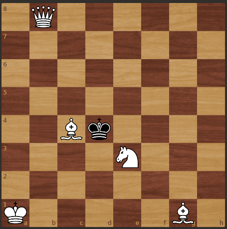 Шахматная задача. автор Л. Полгар 2001 год. Белые конь может дать черному королю двойной шах двумя способами., но это не приведет к мату в 2 хода. Белые начинают, задача поставить мат в 2 хода. . Смотрите так же хитрый мат в центре доски тут>>