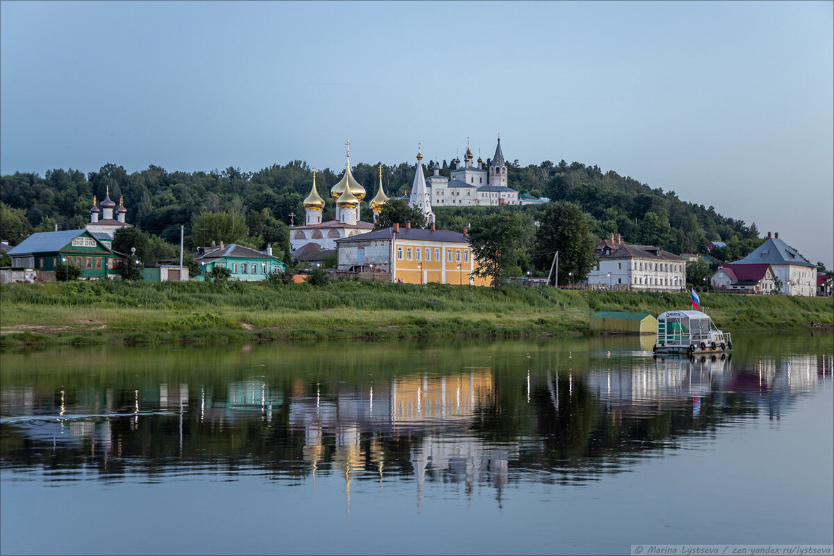 Свято-Троицкий Никольский мужской монастырь наверху, там есть смотровая площадка, но с неё вид хороший после обеда, когда солнце сместится.