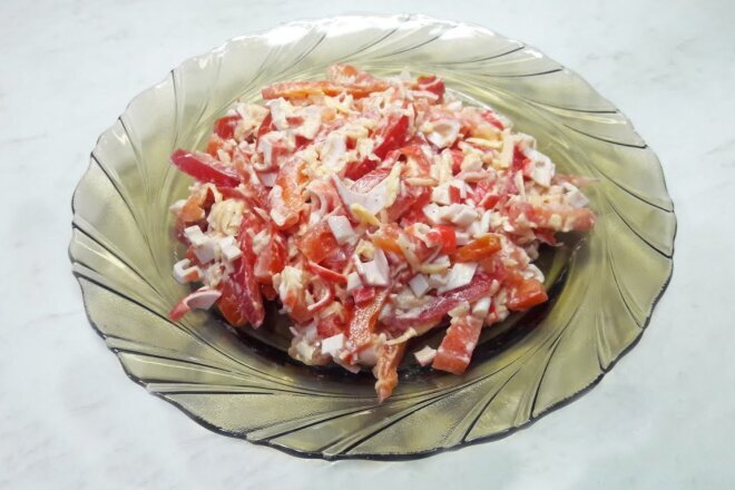 ШАГ 8. Заправить салат майонезом или сметаной. Перемешать.