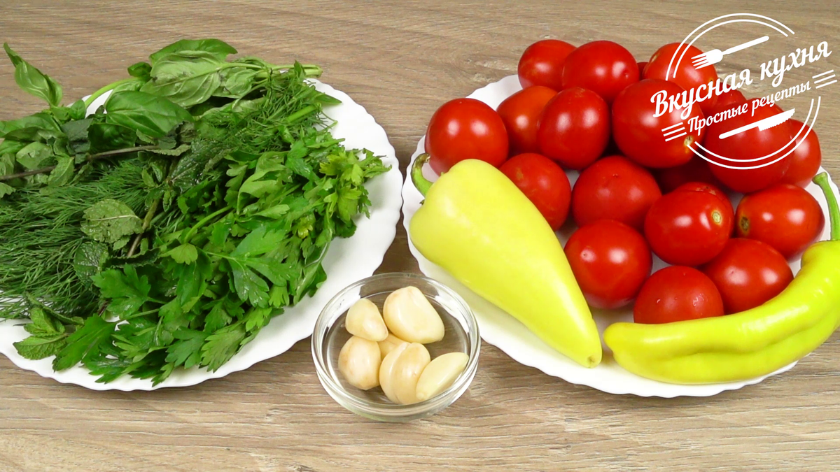 С приближением осени хочется квашеных овощей. Беру помидоры, перец, чеснок и разную зелень. Что получилось через двое суток, посмотрите на моем Youtube канале Вкусная кухня. Простые рецепты. Приготовление: 1. Подготовленные овощи и зелень укладываем в пакет. Помыть овощи и зелень, обсушить салфетками. У помидоров удалить плодоножку и сделать на каждом сверху крестообразные неглубокие надрезы (это необходимо, чтобы помидоры быстрее просолились). 2. Болгарский очистить и нарезать полосками. 3. У половины стручка острого перца удалить семена и нарезать его колечками. 4. Нарезать и уложить в пакет петрушку, укроп, добавить листья базилика и мяты. 5. Зубчики чеснока очистить, помыть и нарезать кусочками или пластинками. 6. Добавить зерна горчицы, горошины черного перца, соль, сахар, черный молотый перец (по желанию). 7. Пакет хорошо завязать (для надежности использовать два пакета) или, как у меня закрыть клипсой. Переворачивать пакет в руках, чтобы специи равномерно распределил