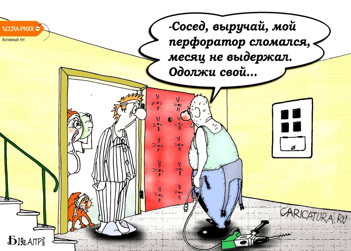 Здравствуйте, товарищи люди! Были ли у вас такие соседи, у которых вечный ремонт? У некоторых так точно вечный. Они годами штробят "та-та-та-та-та", сверлят "ту-ту-ту-ту-ту", всяко разное делают понимаете ли, стучат, всё время ковыряются в чём-то. Про таких соседей у меня и будет анекдот, присаживайтесь, и хорошего вам настроения. Ночью в отделение травматологии привезли мужика с перфоратором в пятой точке. Врачи быстро его прооперировали, зашили жизненно важные места и положили вопалату. На следующий день в обед к нему приходит участковый и начинает расспрашивать что да как было: - Так, расскажите как это случилось. Мужик начинает: - Сверлю я значит потолок, никому не мешаю. Вдруг на меня сзади нападают, за шею вот так вот (показывает) хватают и перфоратор мне в задницу засовывают. Участковый спрашивает: - Ну, вы может сопротивлялись, видели нападавшего? Сможете его опознать? - Нет, как я его... он же ко мне сзади подошёл. - Ну, может соседи что-то слышали или видели. Смогу