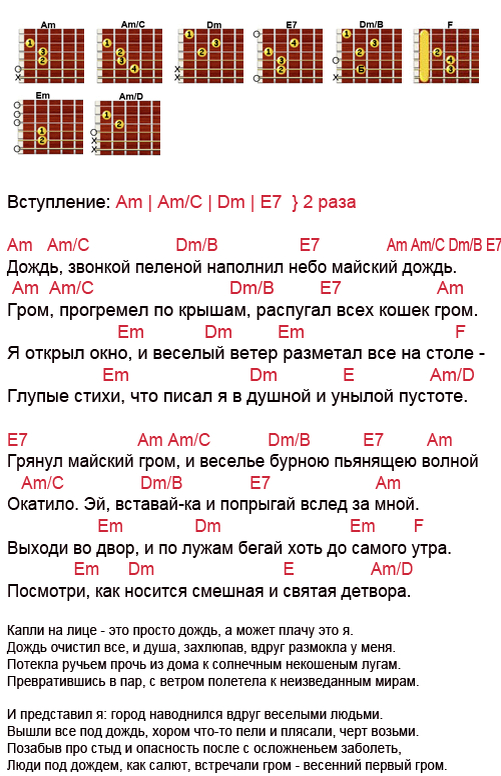 Гитара Аккорды песни ДДТ Что такое осень?