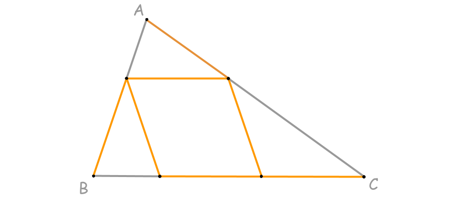 Дан △ABC. Точки, отмеченные на сторонах угла, задают семь равных (оранжевых) отрезков, см. рисунок.