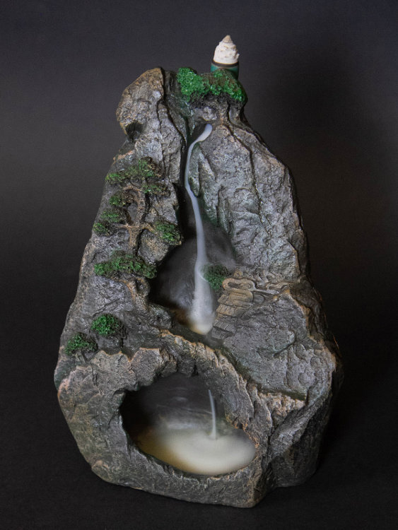 Поместите "пулю" в отведенное для нее место. Проследите, что отверстие внутри благовония совпадает с отверстием в подставке. Зажгите благовония и уже через три-пять минут вы увидите ниспадающий дым. Рекомендуется использовать в защищенном от сквозняков месте — движение воздуха может легко рассеять дымные струи. Время горения одной "пули" около 15 минут. Водопад в горах — символ спокойствия, чистоты духа и внутренней гармонии. Сосна, растущая на скале — олицетворяет здоровье и долгую жизнь, найти подставку можно в Золотом Драконе.