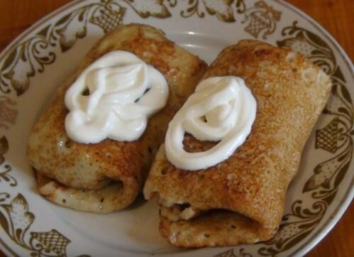 8. Когда блинчики будут готовы, заверните в них остывшую начинку.