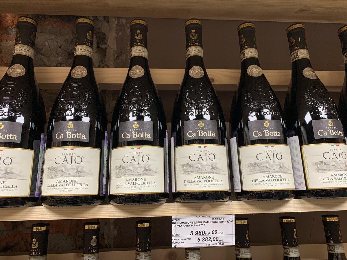 Согласно официальной статистике благосостояние населения растёт, жить становиться лучше и веселее. Мы тоже стараемся не отставать от общего тренда. Раньше на вино тратили 600-800₽ за бутылку. Самое дорогой напиток не превышал 1500₽. Но сегодня за один вечер превзошли свой годовой бюджет. 6000₽ за бутылку итальянского Amarone della Valpolicella DOCG Tenuta Cajo урожая 2014 года. Естественно перед тем, как сделать выбор, прочитал отзывы и просканировал этикетку через VIVINO. Тут вам почти максимальная оценка 4,4 из 5 возможных. Только восхитительные отзывы и средняя цена 8000₽. Однако в сети магазинов @nezarylem нужное нам вино стоит всего 5980₽. Вино полусухое, имеет высшую категорию DOCG и делается по уникальной технологии Tenute Ca Botta из подвяленного винограда. В итоге получаем очень плотный и насыщенный вкус. В меру сухое и мягкое при 14,5’ содержания алкоголя. К такому вину требуется достойная закуска. В гастрономическом сопровождение рекомендованы стейки и пернатая дичь. Мы
