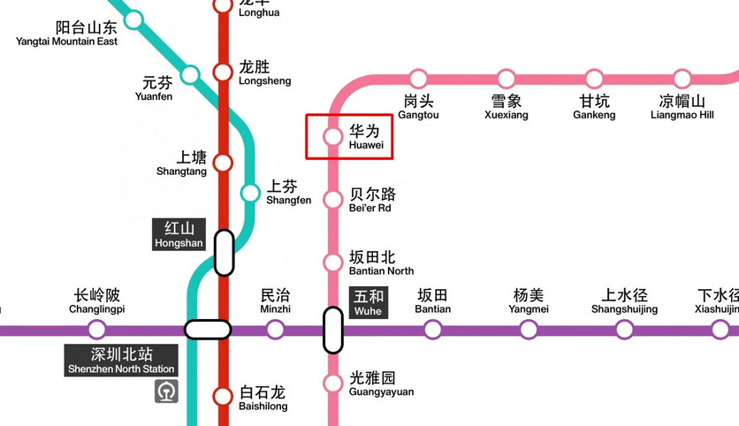 Доброго времени суток! Развитие метро в Китае, в городе Шэньчжэнь, идёт довольно быстрыми темпами. Именно поэтому этот город имеет одно из самых крупных метро в мире. Недавно к нему было добавлено две новые ветки. В общей сложности это 51 станция. И одна из них получила название крупного китайского бренда, производителя микроэлектроники и цифровой техники - Huawei. Какими причинами было вызвано такое решение - не совсем понятно. Возможно, акция солидарности с многострадальной (по крайней мере в последнее время) корпорацией и как способ, её морально поддержать. Возможно, просто для привлечения внимания как к Huawei, так и к Шэньчжэньскому метрополитену. Однако местные жители и туристы крайне положительно оценили идею такого наименования одной из станций. Люди массово фотографируются возле логотипа, фотографируют на его фоне свои смартфоны. Повышенный интерес к данной станции проявили даже пользователи яблочной продукции