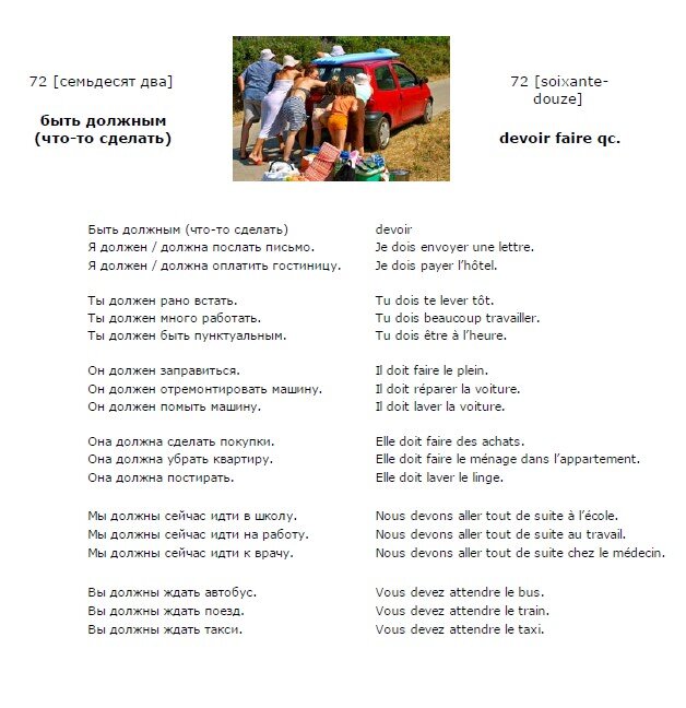Он должен отремонтировать машину. - Il doit réparer la voiture.