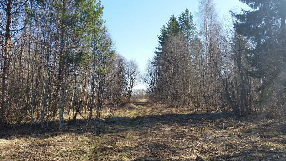 Дорога до урочища сначала шла по полю с огромными колеями, видомо по весне тут катался трактор. Хорошо, что все поле уже подсохло, а то встрять можно было без вопросов. Ну а потом шла хорошая дорога через лес.