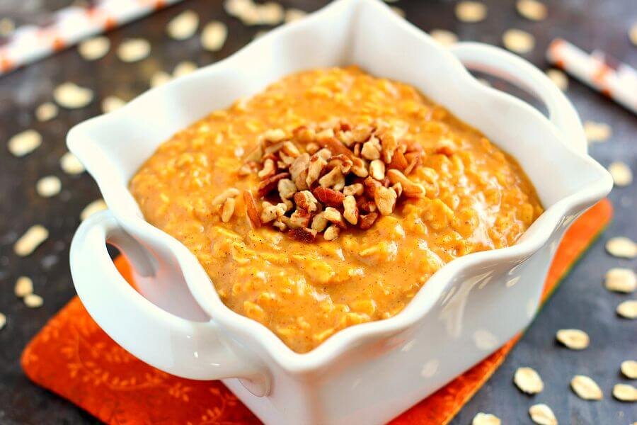 45 минут 4 порции 1. Вырезав из целой тыквы кусок, почистив его от кожуры, режем на небольшие кусочки. И отбираем на кашу 200 грамм тыквы. 2. 150 граммов овсяных хлопьев это норма на 4 порции каши средней вязкости 3. Для удобства можно использовать стеклянный мерный стакан для жидкостей. В нём 150 граммов овсяных хлопьев как раз достигают риски на 250 мл. 4. В кастрюлю с кусочками тыквы наливаем 200 мл воды, доводим содержимое кастрюли до кипения и в течение 15-20 минут варим тыкву, стараясь не давать воде выкипать. 5. Размягчённую тыкву превращаю в пюре. 6. Засыпать в тыквенное пюре соль и сахар по вкусу, овсяные хлопья, залить 300 мл молока (1,5 стакана). Всё тщательно перемешать, довести до кипения и затем варить кашу на среднем нагреве, постоянно помешивая ложкой. 7. Достаточно 10 минут для того, чтобы сварилась полу вязкая каша. 8. Готовую горячую овсяную кашу с тыквой выкладываем в тарелку, при желании добавляем кусочек сливочного масла, посыпаем корицей. Приятного аппе