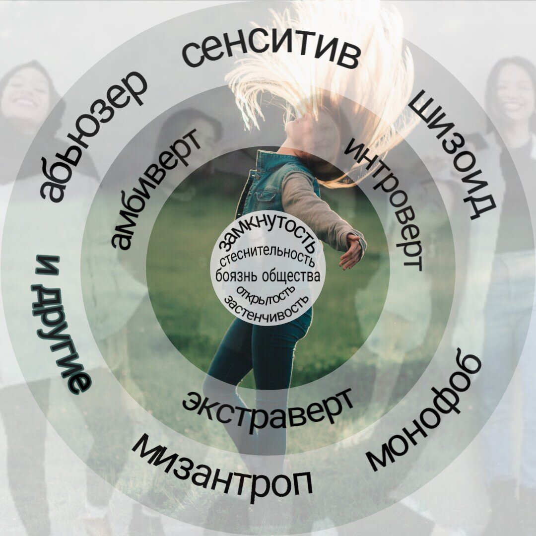 Давайте для начала разберемся в сути этих терминов . Представьте несколько кругов ,расположенных друг в друге . Первый круг - люди в нашем окружении, не знающие значения слов : интроверт, экстраверт, сенситив, шизоид и т.п.. Для них существуют лишь признаки, такие, как стеснение, замкнутость, открытость и т.д.. Зачастую, если вы назовёте их интровертом или шизоидом, они воспримут вас,как человека, оскорбляющего их . Второй круг более углубленный . Он представляет людей ,которые делят себя на три типа ( в сфере данных признаков ) : 1 тип - Интроверт . Люди ,которые к нему относятся сосредоточены на развитии своего внутреннего мира . Внешний мир для них не играет ведущей роли. Такому человеку не свойственно открытое общение с человеком, который не является его единомышленником . Интроверта окружает небольшая группа людей, которая может помочь развитию его внутреннего мира, из которых он черпает знания, перенимает опыт полезный ДЛЯ НЕГО . Такой человек вряд ли предпочтет саморазвити