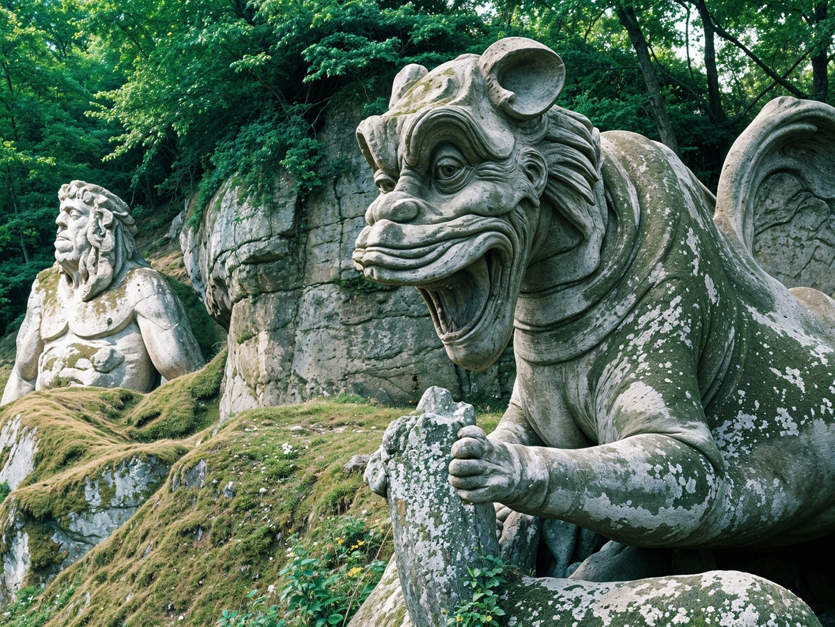 Большинство туристов, приезжающих в Италию, заглядывают в Рим. В сотне километров от столицы расположилось удивительное место – Парк монстров, или Священный лес, пренебрегать посещением которого точно не стоит. Парк монстров – это комплекс огромных статуй и скульптур, организованный 5 веков назад вблизи Бомарцо. История создания Сегодня у ученых нет единого мнения по вопросу возникновения парка. Одна из самых распространенных (и красивых) версий гласит, что Парк монстров – это подарок Пьерфранческо II Вичино Орсини своей жене Джулии Орсини Фарезе. В парке мужчина нашел отдушину: он долгое время участвовал в папских войнах, полностью опустошивших его, разочарование и скепсис стали постоянными спутниками. Священный лес решил эту проблему, воплотив в себя знания Пьерфранческо в алхимии. К несчастью, возлюбленная мужчины умерла в 1557 году, не успев насладиться подарком. В ее память был построен Храм вечности. Вторая распространенная версия возникновения парка менее романтична: счит