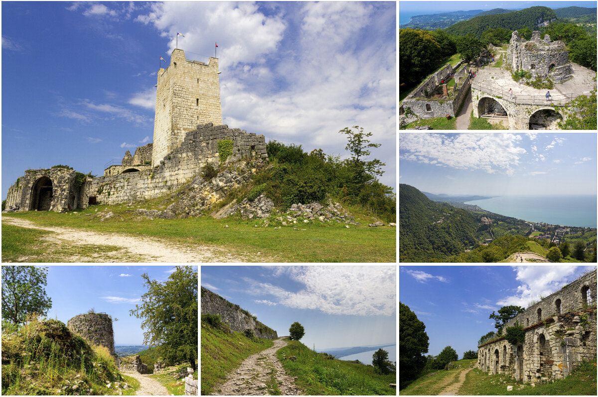 "Главная восточная башня была выстроена в середине XI в. как главный наблюдательный пункт и последний рубеж обороны местной знати. Башня 4-х этажная. Древний вход в башню был расположен на высоте второго яруса. Помещение 1 яруса служило для хранения запасов продовольствия и воды на случай осады. В начале XX в. на уровне 1 этажа Новоафонскими монахами был устроен пролом, который в 2008 году был приспособлен для прохода в башню. С 2007 по 2008 г.г. проводились реставрационные работы Анакопийским Национальным заповедником, завершенные к 15 летию Дня Победы в Отечественной войне Абхазии. Памятники охраняются государством и повреждение их карается законом."
