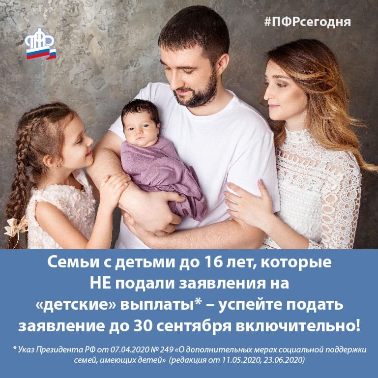 Семьи с детьми до 16 лет, которые НЕ подали заявления на выплаты – успейте подать заявление до 30 сентября включительно!⠀